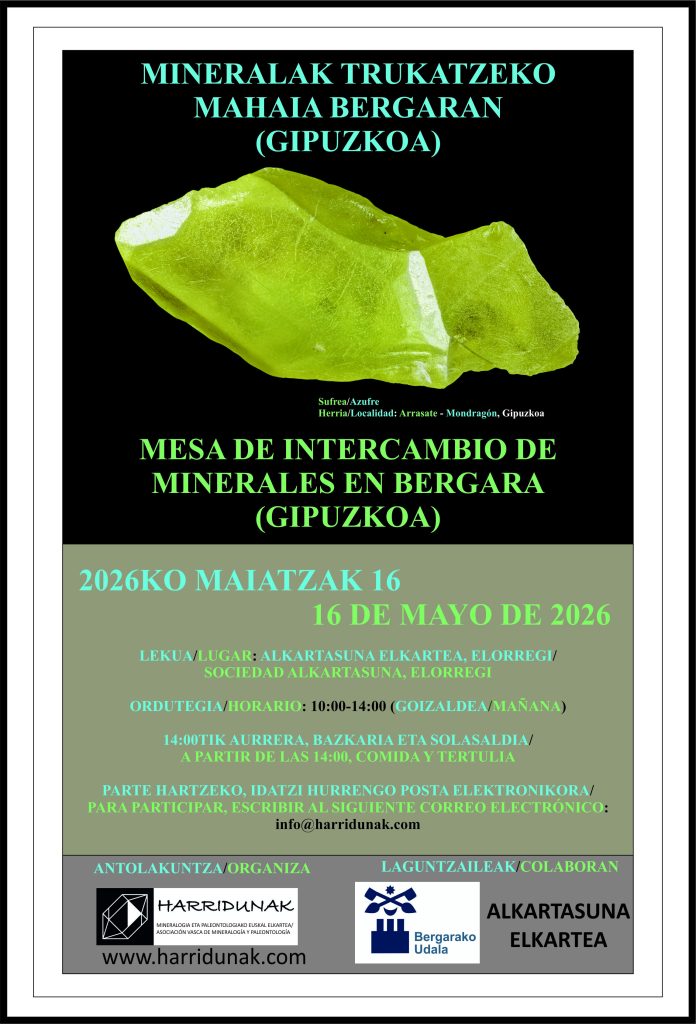 El próximo 16 de mayo llevaremos a cabo una Mesa de Intercambio de Minerales en Bergara (Gipuzkoa)